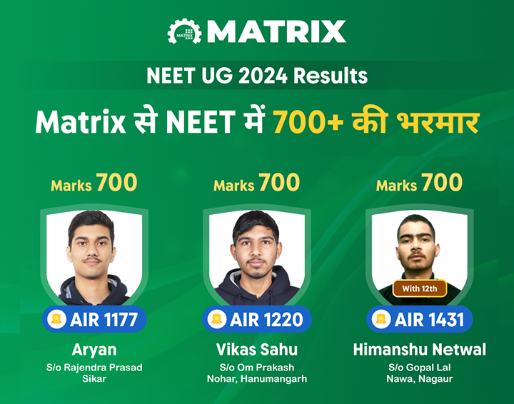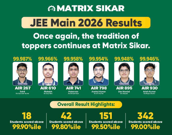 Matrix Sikar, trusted across India, combines expert faculty from IITs, IIMs, NITs, and top medical colleges with proven teaching methods, helping thousands achieve top ranks every year.